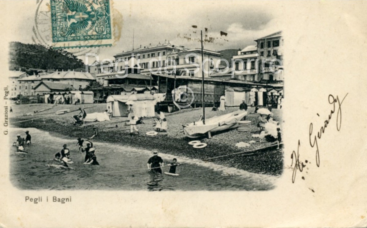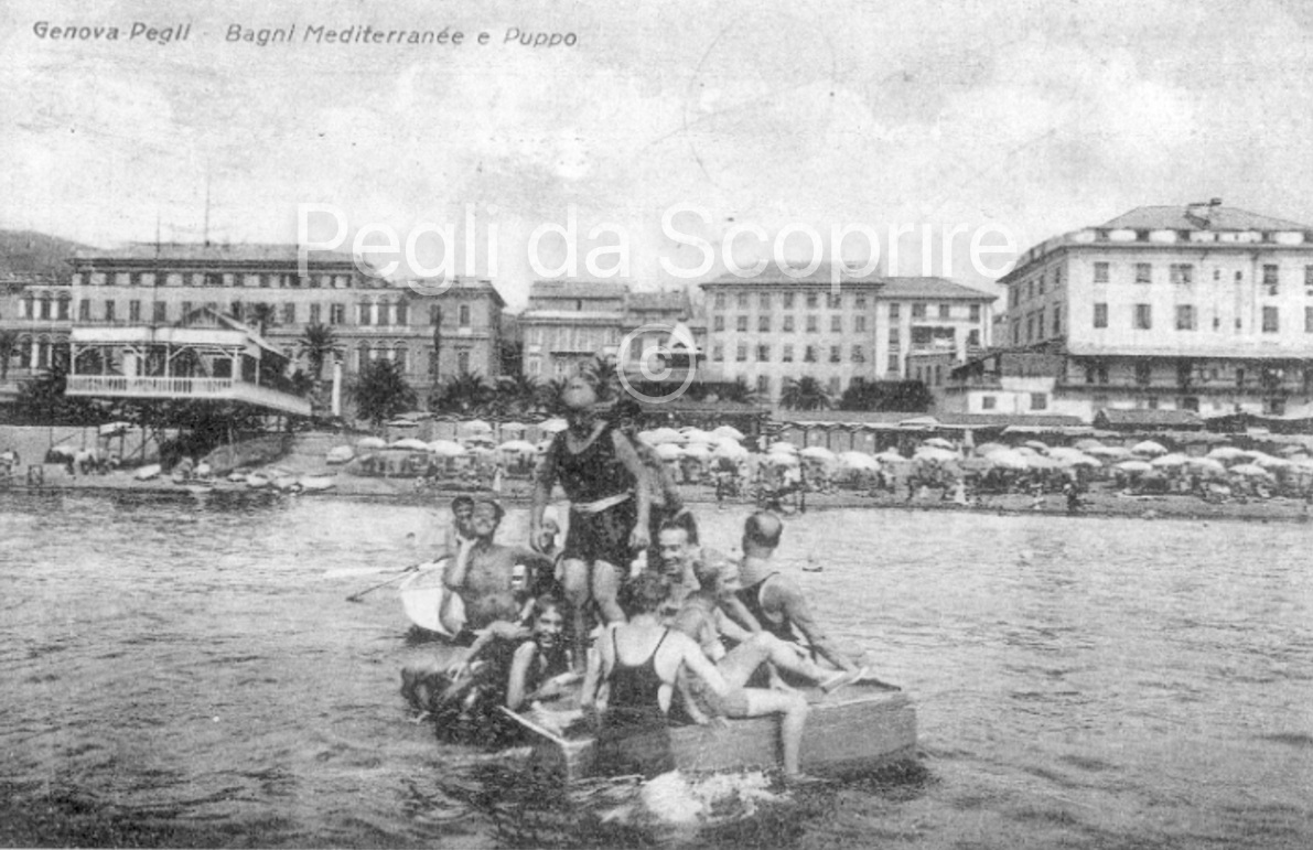 Cartolina del 1915 che reclamizza i Bagni di Pegli. Si notino la