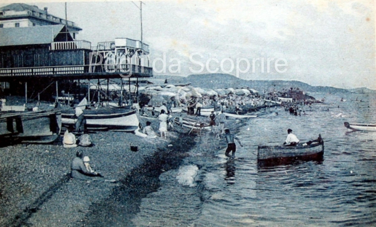 del 1920 sulla spiaggia dei Bagni Puppo, si osservi il lungo